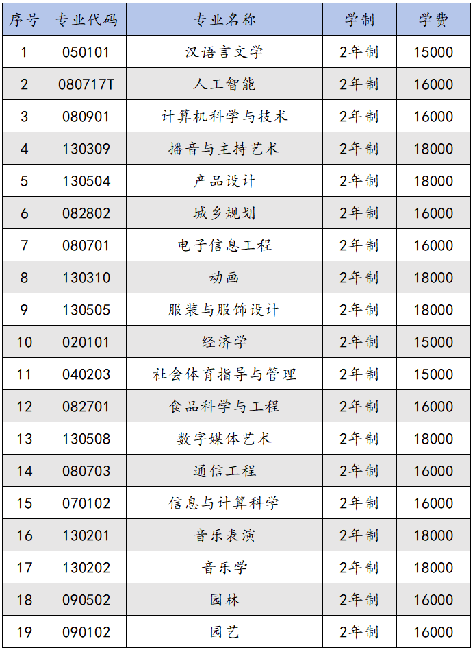 第十四条 收费标准严格按照国家有关规定执行,专升本文史类专业15000元/生/年,专升本理工类专业16000元/生/年,专升本艺术类专业18000元/生/年;住宿标准为:6人间1500元/生/年,8人间1400元/生/年。
